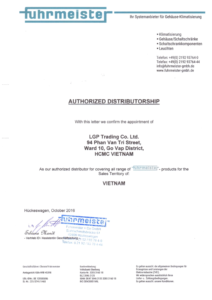 Chứng nhận đại lý Fuhrmeister tại Việt Nam