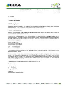 Chứng nhận đại lý Beka tại Việt Nam