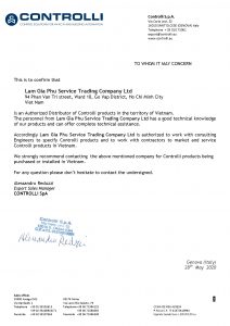 Chứng nhận đại lý Controlli tại Việt Nam