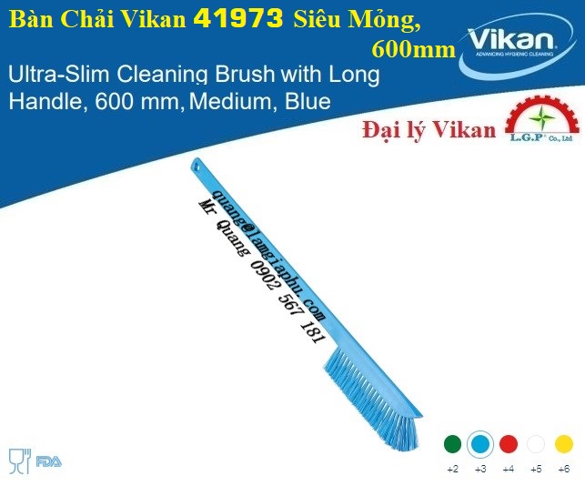 – Bàn Chải Vikan 41973 – Bàn chải siêu mỏng Vikan 41973, 600 mm này làm sạch những nơi mà các bàn chải khác không thể chạm tới, có cạnh cạo để xử lý các mảnh vụn cứng đầu. Có tay cầm mỏng dễ cầm và đầu được thiết kế đặc biệt với những sợi lông cực kỳ cứng giúp làm sạch mọi góc cạnh không gian hẹp. Khối bàn chải được chế tạo bằng cách sử dụng các mảnh polypropylen tuân thủ tiếp xúc với thực phẩm từ các sản phẩm Vikan khác.