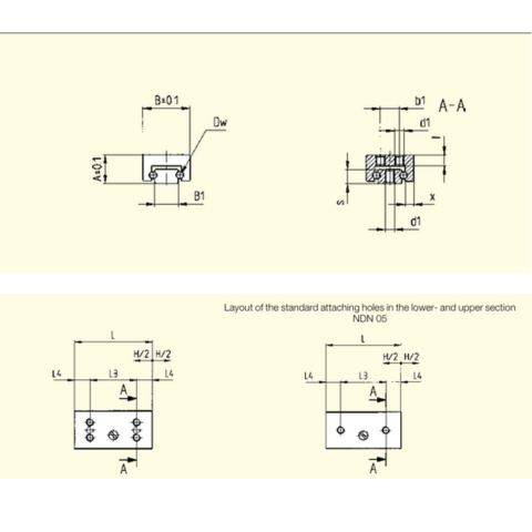 Bàn trượt micro NDN 05-10.05 gồm phần trên và phần dưới có cùng chiều dài, dùng được nằm ngang hoặc thẳng đứng. Kết cấu chỉ gồm 4 thành phần: phần dưới bằng thép không gỉ, phần trên bằng thép không gỉ, lồng bi bằng đồng thau, và phần tử lăn bằng thép không gỉ.