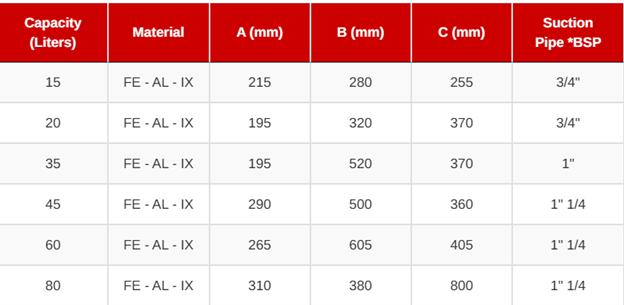 Bình chứa 35 lít, lắp trên khung, làm bằng thép, có mức dầu tròn, nắp bình chứa, nút thông hơi có bộ lọc khí tích hợp và bộ lọc hồi lưu trên đỉnh bình (đơn) có đồng hồ đo áp suất