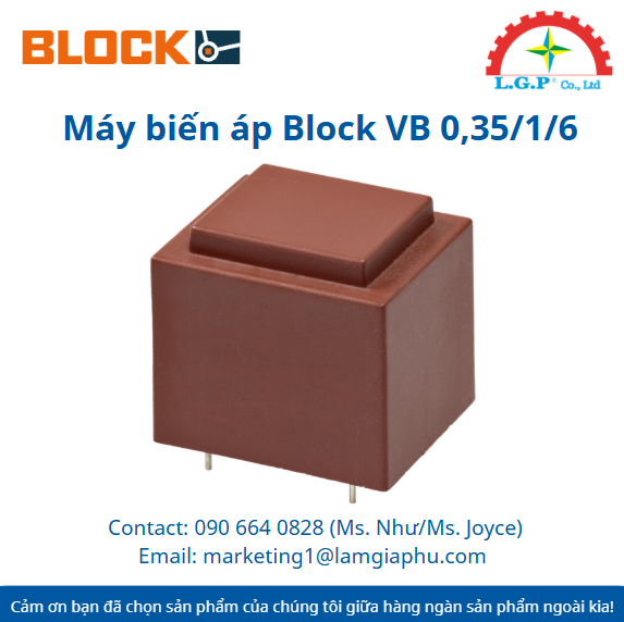 | Sản phẩm | Máy biến áp Block VB 0,35/1/6 (Biến áp gắn mạch PCB chống ngắn mạch, biến áp cách ly an toàn) |