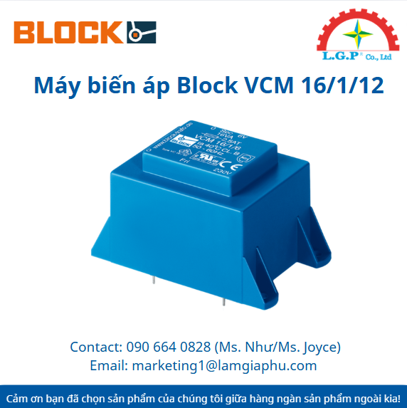 Máy biến áp Block VCM 16/1/12 là dòng máy biến áp gắn mạch PCB (PCB Transformer) chuyên dụng, thiết kế để cách ly hoàn toàn mạch sơ cấp và thứ cấp (galvanic isolation). Đặc điểm nổi bật của dòng VCM là được trang bị thêm các vấu (lugs) trên vỏ máy, mang lại các tùy chọn lắp đặt linh hoạt và chắc chắn hơn. Nhờ công nghệ đúc nhựa XtraDenseFill độc quyền, sản phẩm đảm bảo khả năng bảo vệ chống ăn mòn vĩnh viễn và độ bền điện cao nhất.