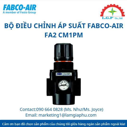 LGP Co., Ltd– Chúng tôi cung cấp Bộ điều chỉnh áp suất Fabco-Air FA2 CM1PM, nổi tiếng về chất lượng và hiệu suất vượt trội trên thị trường. Sản phẩm của chúng tôi được khách hàng đánh giá cao về độ tin cậy và chất lượng tiêu chuẩn. Các sản phẩm được kiểm tra cẩn thận, mua từ các nguồn uy tín và có nhu cầu cao. Chúng tôi cung cấp trên toàn quốc với giá cả cạnh tranh. Ngoài ra, chúng tôi còn cung cấp các sản phẩm của các thương hiệu như Silvent, Vikan, Air Torque, Jumo, Yudian,…