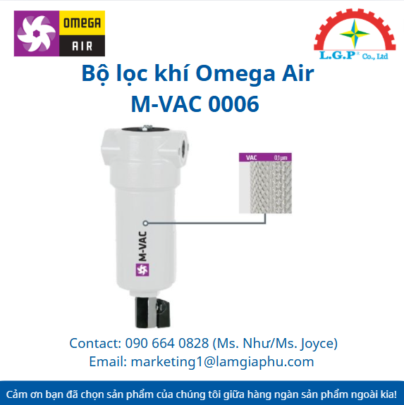Bộ lọc khí Omega Air M-VAC 0006 chuyên dùng để loại bỏ hiệu quả vi khuẩn và tạp chất cho hệ thống chân không y tế. Sản phẩm giúp bảo vệ máy bơm và ngăn chặn nguy cơ lây nhiễm mầm bệnh ra môi trường nhờ thiết kế bình chứa dịch trong suốt có thể tháo rời để tiệt trùng. Với hiệu suất vượt tiêu chuẩn HTM 2022 và BS 3928, đây là giải pháp an toàn tối ưu cho các đơn vị điều trị bệnh truyền nhiễm.