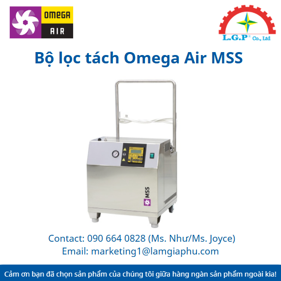 Bộ lọc tách Omega Air MSS là thiết bị tiệt trùng bằng hơi nước di động, ngăn chặn hoạt động vi sinh trong hệ thống khí nén ẩm và nóng. Thiết bị cho phép tiệt trùng tại chỗ (SIP) nhanh chóng, dễ dàng và tiết kiệm hơn so với autoclave. MSS có thể kết nối vào bất kỳ phần nào của hệ thống cần tiệt trùng và di chuyển sang vị trí khác sau khi hoàn tất. Hoạt động với áp suất hơi 1–3,6 bar, nhiệt độ 100–135 °C, thời gian tiệt trùng và làm khô lên đến 90 phút mỗi giai đoạn. Ứng dụng chính trong ngành thực phẩm, sản xuất rượu, sữa và các nhà máy bia nhỏ.