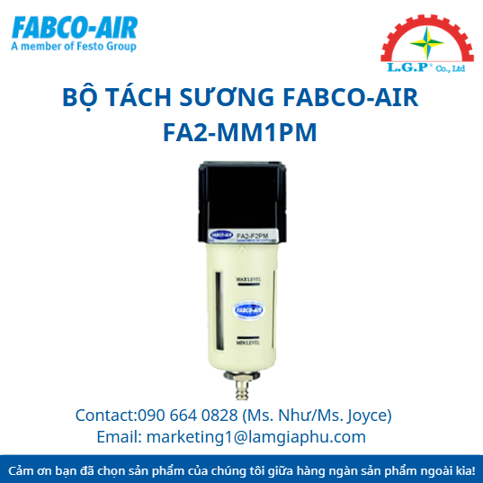 LGP Co., Ltd– Chúng tôi cung cấp Bộ tách sương Fabco-Air FA2-MM1PM, nổi tiếng về chất lượng và hiệu suất vượt trội trên thị trường. Sản phẩm của chúng tôi được khách hàng đánh giá cao về độ tin cậy và chất lượng tiêu chuẩn. Các sản phẩm được kiểm tra cẩn thận, mua từ các nguồn uy tín và có nhu cầu cao. Chúng tôi cung cấp trên toàn quốc với giá cả cạnh tranh. Ngoài ra, chúng tôi còn cung cấp các sản phẩm của các thương hiệu như Silvent, Vikan, Air Torque, Jumo, Yudian,…