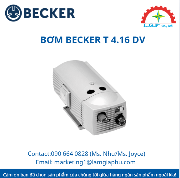 LGP Co., Ltd– Chúng tôi cung cấp Bơm Becker T 4,16 DV, nổi tiếng về chất lượng và hiệu suất vượt trội trên thị trường. Sản phẩm của chúng tôi được khách hàng đánh giá cao về độ tin cậy và chất lượng tiêu chuẩn. Các sản phẩm được kiểm tra cẩn thận, mua từ các nguồn uy tín và có nhu cầu cao. Chúng tôi cung cấp trên toàn quốc với giá cả cạnh tranh. Ngoài ra, chúng tôi còn cung cấp các sản phẩm của các thương hiệu như Silvent, Vikan, Air Torque, Jumo, Yudian,…