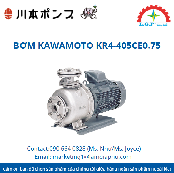 LGP Co., Ltd– Chúng tôi cung cấp Bơm Kawamoto KR4-405CE0.75, nổi tiếng về chất lượng và hiệu suất vượt trội trên thị trường. Sản phẩm của chúng tôi được khách hàng đánh giá cao về độ tin cậy và chất lượng tiêu chuẩn. Các sản phẩm được kiểm tra cẩn thận, mua từ các nguồn uy tín và có nhu cầu cao. Chúng tôi cung cấp trên toàn quốc với giá cả cạnh tranh. Ngoài ra, chúng tôi còn cung cấp các sản phẩm của các thương hiệu như Silvent, Vikan, Air Torque, Jumo, Yudian,…