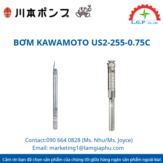 LGP Co., Ltd– Chúng tôi cung cấp Bơm Kawamoto US2-255-0.75C, nổi tiếng về chất lượng và hiệu suất vượt trội trên thị trường. Sản phẩm của chúng tôi được khách hàng đánh giá cao về độ tin cậy và chất lượng tiêu chuẩn. Các sản phẩm được kiểm tra cẩn thận, mua từ các nguồn uy tín và có nhu cầu cao. Chúng tôi cung cấp trên toàn quốc với giá cả cạnh tranh. Ngoài ra, chúng tôi còn cung cấp các sản phẩm của các thương hiệu như Silvent, Vikan, Air Torque, Jumo, Yudian,…