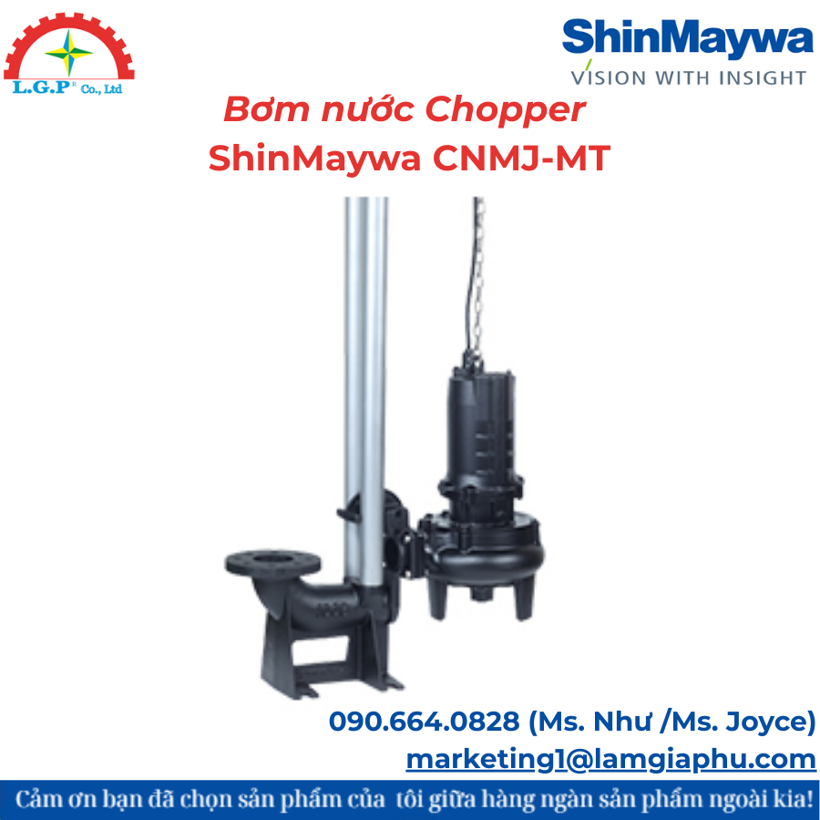 Bơm nước Chopper ShinMaywa CNMJ-MT là dòng bơm thoát nước mạnh mẽ, được thiết kế với cơ chế chopper giúp cắt nhỏ rác và chất rắn để tránh tắc nghẽn. Với khả năng xử lý chất rắn lên đến 3 inch và thiết kế tự làm sạch, sản phẩm phù hợp cho các ứng dụng bơm nước thải và nước có chứa tạp chất. Bơm sử dụng cánh quạt bán hở có chopper, giúp tăng hiệu suất hoạt động và giảm thiểu nguy cơ tắc nghẽn.