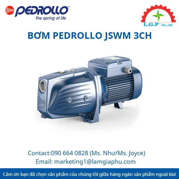 LGP Co., Ltd– Chúng tôi cung cấp Bơm Pedrollo JSWm 3CH, nổi tiếng về chất lượng và hiệu suất vượt trội trên thị trường. Sản phẩm của chúng tôi được khách hàng đánh giá cao về độ tin cậy và chất lượng tiêu chuẩn. Các sản phẩm được kiểm tra cẩn thận, mua từ các nguồn uy tín và có nhu cầu cao. Chúng tôi cung cấp trên toàn quốc với giá cả cạnh tranh. Ngoài ra, chúng tôi còn cung cấp các sản phẩm của các thương hiệu như Silvent, Vikan, Air Torque, Jumo, Yudian,…