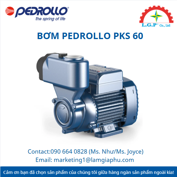 LGP Co., Ltd– Chúng tôi cung cấp Bơm Pedrollo PKS 60, nổi tiếng về chất lượng và hiệu suất vượt trội trên thị trường. Sản phẩm của chúng tôi được khách hàng đánh giá cao về độ tin cậy và chất lượng tiêu chuẩn. Các sản phẩm được kiểm tra cẩn thận, mua từ các nguồn uy tín và có nhu cầu cao. Chúng tôi cung cấp trên toàn quốc với giá cả cạnh tranh. Ngoài ra, chúng tôi còn cung cấp các sản phẩm của các thương hiệu như Silvent, Vikan, Air Torque, Jumo, Yudian,…
