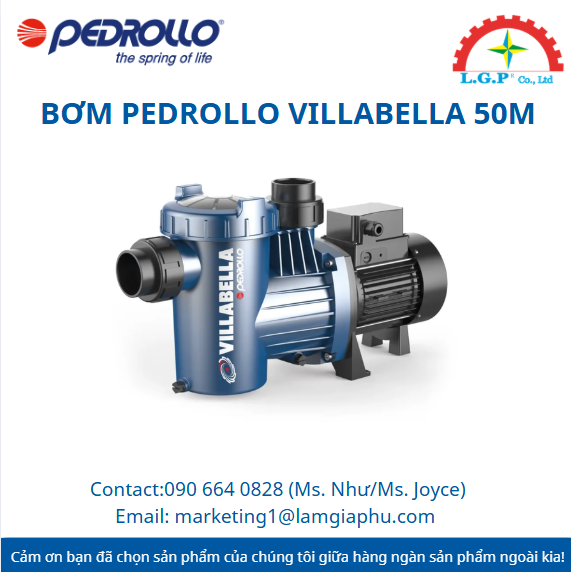 LGP Co., Ltd– Chúng tôi cung cấp Bơm Pedrollo VILLABELLA 50m, nổi tiếng về chất lượng và hiệu suất vượt trội trên thị trường. Sản phẩm của chúng tôi được khách hàng đánh giá cao về độ tin cậy và chất lượng tiêu chuẩn. Các sản phẩm được kiểm tra cẩn thận, mua từ các nguồn uy tín và có nhu cầu cao. Chúng tôi cung cấp trên toàn quốc với giá cả cạnh tranh. Ngoài ra, chúng tôi còn cung cấp các sản phẩm của các thương hiệu như Silvent, Vikan, Air Torque, Jumo, Yudian,…
