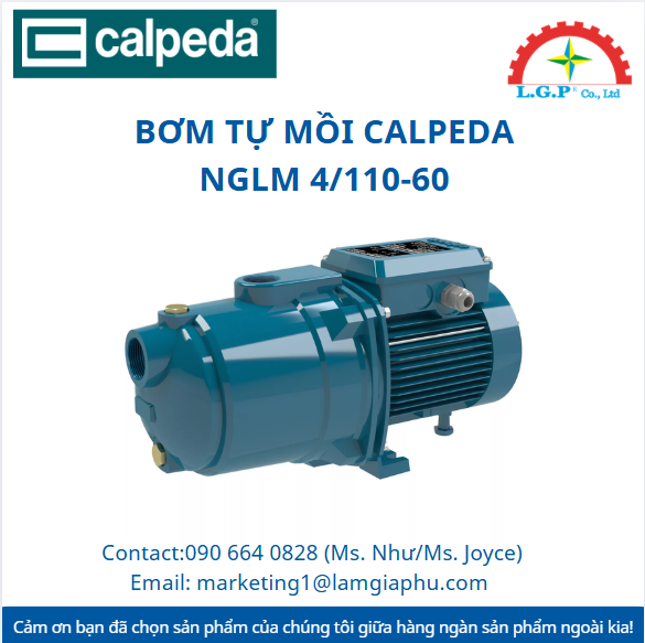 LGP Co., Ltd– Chúng tôi cung cấp Bơm tự mồi Calpeda NGLM 4/110-60, nổi tiếng về chất lượng và hiệu suất vượt trội trên thị trường. Sản phẩm của chúng tôi được khách hàng đánh giá cao về độ tin cậy và chất lượng tiêu chuẩn. Các sản phẩm được kiểm tra cẩn thận, mua từ các nguồn uy tín và có nhu cầu cao. Chúng tôi cung cấp trên toàn quốc với giá cả cạnh tranh. Ngoài ra, chúng tôi còn cung cấp các sản phẩm của các thương hiệu như Silvent, Vikan, Air Torque, Jumo, Yudian,…