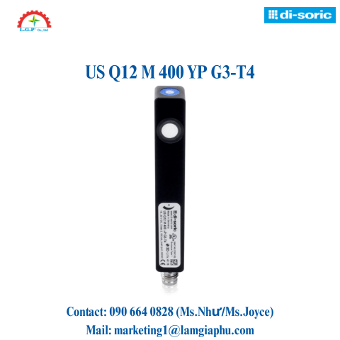 Cảm biến siêu âm di-soric US Q12 M 400 YP G3-T4  là loại nhỏ gọn ở dạng hình khối và có độ sâu lắp đặt nhỏ. Được trang bị giao diện IO-Link, cảm biến có thể được vận hành để chuyển đổi hoặc đo.