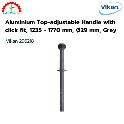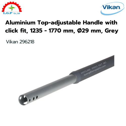 Cán chổi nhôm Vikan 296218, 1235 – 1770 mm, Ø29 mm, xám