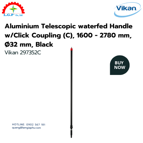 – Số mặt hàng: Cán nhôm Vikan 297352C dạng ống lồng được tưới nước có khớp nối Click (C), 1600 – 2780 mm, Ø32 mm, đen