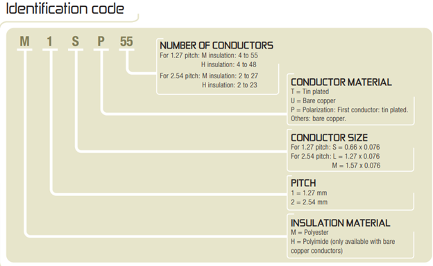 Cấu trúc mã sản phẩm: [Insulation Material] [Pitch] [Conductor Size] [Conductor Material] [Number Of Conductors]