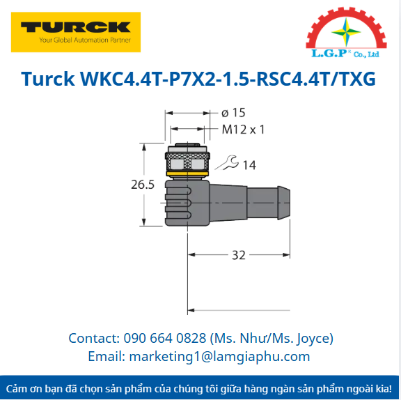Cáp kết nối Turck WKC4.4T-P7X2-1.5-RSC4.4T/TXG dài 1.5m, tích hợp đèn LED hiển thị trạng thái PNP trực quan. Vỏ PUR bền bỉ, kháng hóa chất và chống tia lửa hàn, chuyên dụng cho xích dẫn cáp trong môi trường khắc nghiệt.