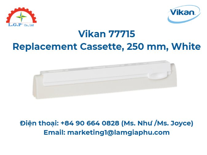LGP Co., Ltd – Chúng tôi cung cấp Cassette thay thế, Vikan 77715, nổi tiếng về chất lượng và hiệu suất vượt trội trên thị trường. Sản phẩm của chúng tôi được khách hàng đánh giá cao về độ tin cậy và chất lượng tiêu chuẩn. Các sản phẩm được kiểm tra cẩn thận, mua từ các nguồn uy tín và có nhu cầu cao. Chúng tôi cung cấp trên toàn quốc với giá cả cạnh tranh. Ngoài ra, chúng tôi còn cung cấp các sản phẩm của các thương hiệu như Silvent, Vikan, Air Torque, Jumo, Yudian,…