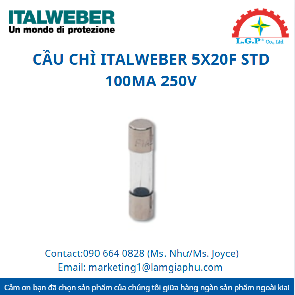 Cầu chì ITALWEBER 5x20F std 100mA 250V