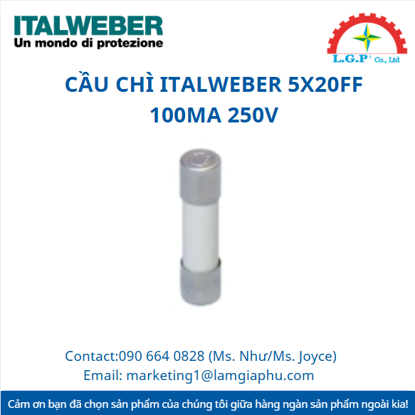 Cầu chì ITALWEBER 5x20FF 100mA 250V
