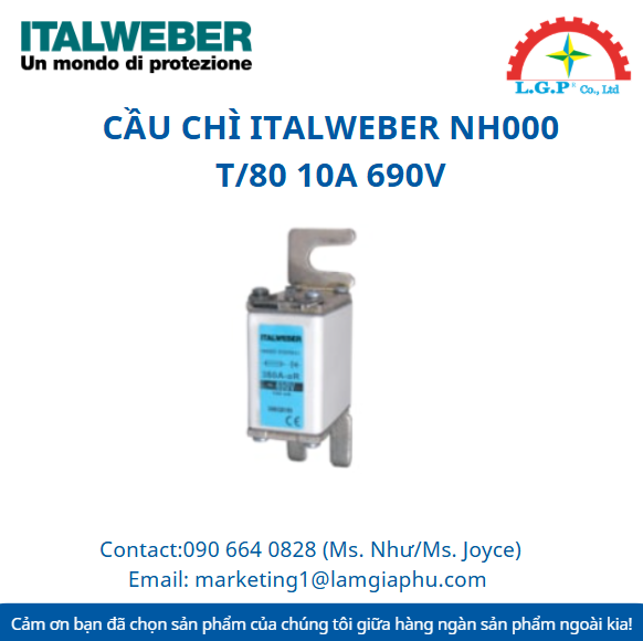 LGP Co., Ltd– Chúng tôi cung cấp Cầu chì ITALWEBER NH000 T/80 10A 690V, nổi tiếng về chất lượng và hiệu suất vượt trội trên thị trường. Sản phẩm của chúng tôi được khách hàng đánh giá cao về độ tin cậy và chất lượng tiêu chuẩn. Các sản phẩm được kiểm tra cẩn thận, mua từ các nguồn uy tín và có nhu cầu cao. Chúng tôi cung cấp trên toàn quốc với giá cả cạnh tranh. Ngoài ra, chúng tôi còn cung cấp các sản phẩm của các thương hiệu như Silvent, Vikan, Air Torque, Jumo, Yudian,…