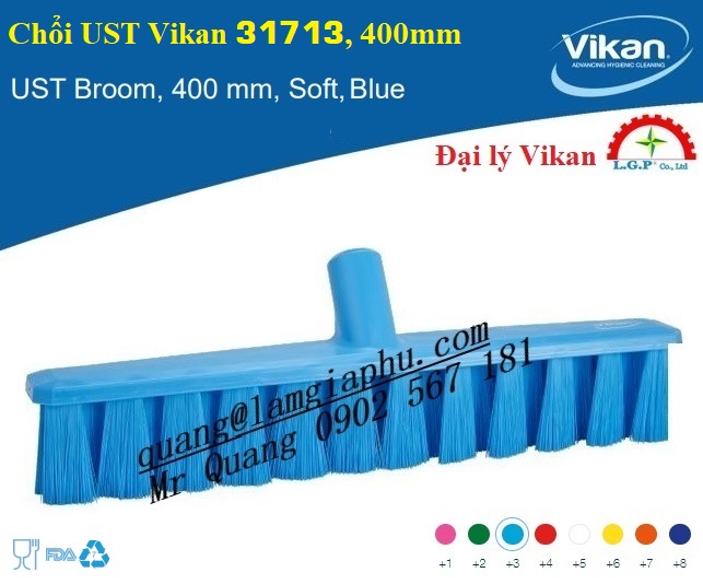 – Chổi Vikan 31713 – Chổi UST Vikan 31713 là chổi Công nghệ siêu an toàn (UST) đi kèm với bộ phận an ninh dây tóc góc cạnh để quét hiệu quả các hạt khô ở những khu vực có nguy cơ cao. Vikan 3171X có thể được sử dụng với bất kỳ tay cầm Vikan nào trong danh mục “Handles”.