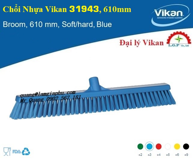 – Chổi Vikan 31943 – Chổi Nhựa Vikan 31943, 610mm được thiết kế để làm sạch hiệu quả cả bề mặt ướt và khô, chổi này có lông phía trước cứng giúp nới lỏng bụi bẩn cứng đầu và các mảnh vụn nặng hơn, trong khi lông phía sau mềm hơn thu thập các hạt mịn hơn.
