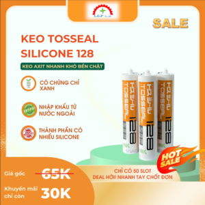 Keo Tosseal Silicone 128 là keo trám silicone một thành phần, gốc acetoxy, chất lượng cao đến từ thương hiệu Momentive. Sản phẩm có độ đàn hồi vượt trội, khả năng co giãn tốt, chịu được nhiệt độ cao – thấp, chống nước và kháng thời tiết rất hiệu quả. Tosseal 128 có khả năng bám dính tốt trên kính, kim loại và nhiều loại vật liệu xây dựng phổ biến.