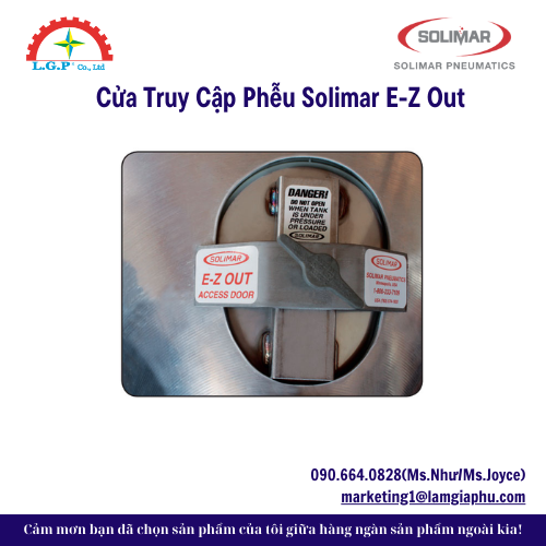 Cửa truy cập phễu Solimar E-Z Out được thiết kế cho việc lắp đặt và sử dụng dễ dàng trong các ứng dụng như rơ moóc khí nén, silo lưu trữ, bộ thu bụi và các thiết bị xử lý. Cửa này thường được sử dụng kết hợp với bộ tạo màng Solimar để tối ưu hóa hiệu quả hoạt động.