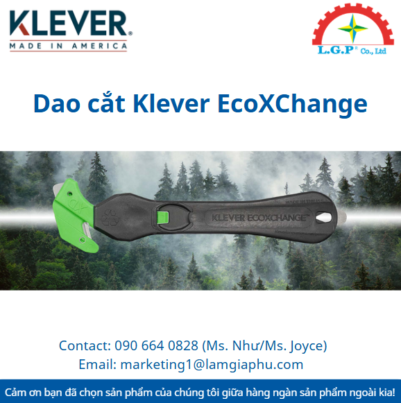 Dao cắt Klever EcoXChange là dao cắt an toàn bằng nhựa tái chế đầu tiên. Thiết kế thay đầu lưỡi giúp tái sử dụng tay cầm (100% tái chế). Lưỡi ẩn an toàn, có thể tùy chỉnh đầu lưỡi (Wide, Narrow, XD).