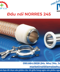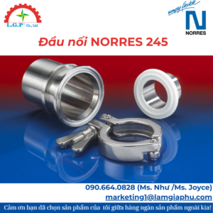 Đầu nối NORRES 245 là dòng đầu nối dạng clamp (kiểu clamp adapter), được thiết kế theo hai tiêu chuẩn quốc tế DIN 32676 và ISO 2852. Sản phẩm được sản xuất bằng thép không gỉ AISI 316L (1.4404) – loại vật liệu cao cấp đáp ứng tốt yêu cầu vệ sinh và an toàn trong ngành thực phẩm, dược phẩm và chân không.