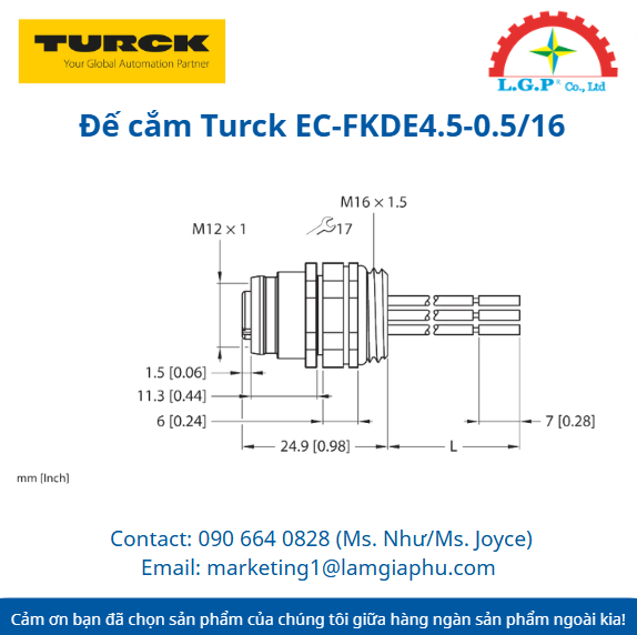 Đế cắm Turck EC-FKDE4.5-0.5/16