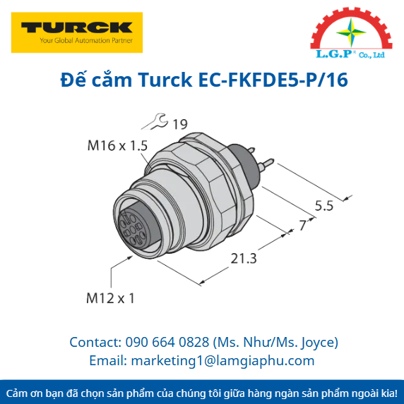 Đế cắm Turck EC-FKFDE8-0.5/16