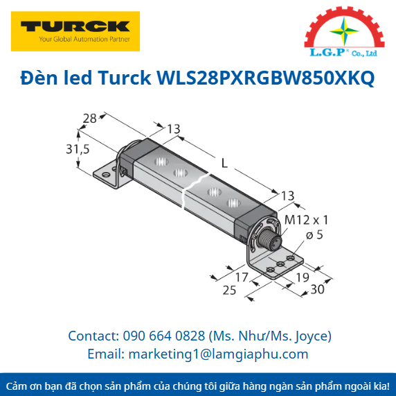 Đèn led Turck WLS28PXRGBW850XKQ là dòng đèn LED thanh công nghiệp thế hệ mới, kết hợp giữa độ bền cơ học vượt trội và khả năng tùy biến ánh sáng vô hạn. Với chiều dài vùng sáng lên đến 850mm và tích hợp công nghệ RGBW, sản phẩm không chỉ cung cấp ánh sáng làm việc mà còn đóng vai trò là thiết bị hiển thị trạng thái hệ thống cực kỳ trực quan thông qua màu sắc và hiệu ứng chuyển động.