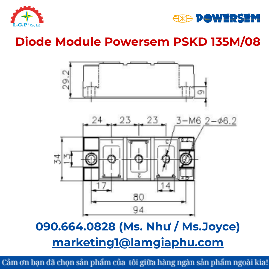 LGP Co., Ltd – Chúng tôi cung cấp Diode Module Powersem PSKD 135M/08 nổi tiếng về chất lượng và hiệu suất vượt trội trên thị trường. Sản phẩm của chúng tôi được khách hàng đánh giá cao về độ tin cậy và chất lượng tiêu chuẩn. Các sản phẩm được kiểm tra cẩn thận, mua từ các nguồn uy tín và có nhu cầu cao. Chúng tôi cung cấp trên toàn quốc với giá cả cạnh tranh. Ngoài ra, chúng tôi còn cung cấp các sản phẩm của các thương hiệu như VEE GEE Scientific, EATON-BUSSMANN, Bauergears, HEB Hydraulik, Beinat, Aeautel, Borger, Silvent, Vikan, Air Torque, Jumo, Yudian,…