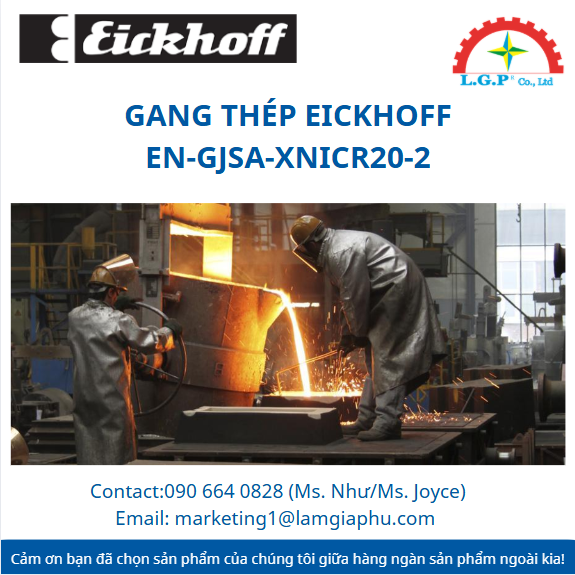 LGP Co., Ltd– Chúng tôi cung cấp Eickhoff EN-GJSA-XNiCr20-2| Gang thép Eickhoff EN-GJSA-XNiCr20-2, nổi tiếng về chất lượng và hiệu suất vượt trội trên thị trường. Sản phẩm của chúng tôi được khách hàng đánh giá cao về độ tin cậy và chất lượng tiêu chuẩn. Các sản phẩm được kiểm tra cẩn thận, mua từ các nguồn uy tín và có nhu cầu cao. Chúng tôi cung cấp trên toàn quốc với giá cả cạnh tranh. Ngoài ra, chúng tôi còn cung cấp các sản phẩm của các thương hiệu như Silvent, Vikan, Air Torque, Jumo, Yudian,…