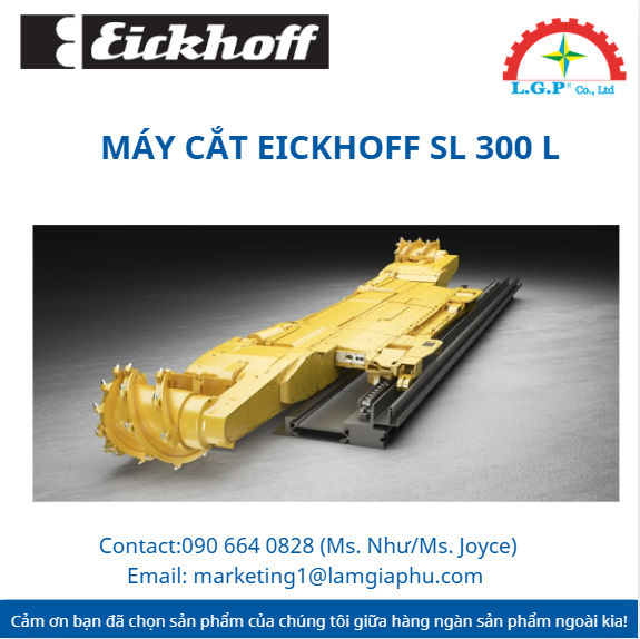Máy cắt Eickhoff SL 300 L là máy khấu dẫn đầu trong phân khúc khai thác vỉa thấp (chỉ từ 1,2m). Với thân máy siêu mỏng 75cm nhưng sở hữu hai động cơ mạnh mẽ 300 kW, máy kết hợp hoàn hảo giữa kích thước nhỏ gọn và công suất cực lớn.