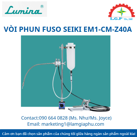 Vòi phun Fuso seiki EM1-CM-Z40A là thiết bị phun dung dịch để cắt, làm mát, bôi trơn hoặc loại bỏ phôi. Đây là dòng sản phẩm bán chạy trong một thời gian dài. Trải qua nhiều lần sửa đổi thiết kế, cấu tạo khác nhau để hỗ trợ sản xuất của Nhật Bản kể từ khi phát hành vào năm 1965.