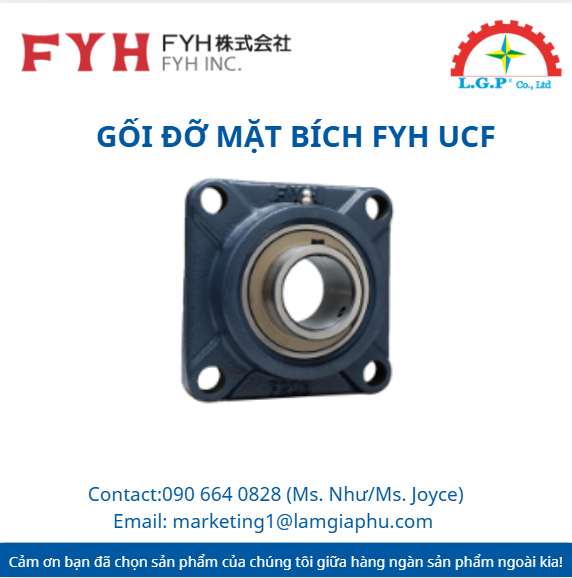 LGP Co., Ltd– Chúng tôi cung cấp FYH UCF| Gối đỡ mặt bích FYH UCF, nổi tiếng về chất lượng và hiệu suất vượt trội trên thị trường. Sản phẩm của chúng tôi được khách hàng đánh giá cao về độ tin cậy và chất lượng tiêu chuẩn. Các sản phẩm được kiểm tra cẩn thận, mua từ các nguồn uy tín và có nhu cầu cao. Chúng tôi cung cấp trên toàn quốc với giá cả cạnh tranh. Ngoài ra, chúng tôi còn cung cấp các sản phẩm của các thương hiệu như Silvent, Vikan, Air Torque, Jumo, Yudian,…