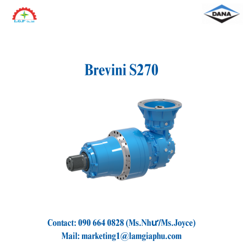 Hộp số giảm tốc Brevini S270 là hộp số giảm tốc hành tinh công nghiệp dạng mô-đun, thiết kế cho mô-men lớn, làm việc bền bỉ trong môi trường tải nặng. Dòng này có nhiều cấu hình lắp đặt thẳng hàng (in-line) hoặc vuông góc (right-angle), phù hợp nhiều kiểu truyền động.