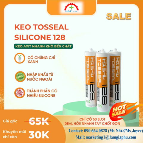 Keo Tosseal Silicone 128 là loại keo silicone axit có khả năng kết dính mạnh mẽ và nhanh khô, được nhập khẩu từ nước ngoài, với thành phần chính chứa nhiều silicone, mang lại khả năng chống nước và độ bền cao.