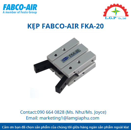 LGP Co., Ltd– Chúng tôi cung cấp Kẹp Fabco-Air FKA-20, nổi tiếng về chất lượng và hiệu suất vượt trội trên thị trường. Sản phẩm của chúng tôi được khách hàng đánh giá cao về độ tin cậy và chất lượng tiêu chuẩn. Các sản phẩm được kiểm tra cẩn thận, mua từ các nguồn uy tín và có nhu cầu cao. Chúng tôi cung cấp trên toàn quốc với giá cả cạnh tranh. Ngoài ra, chúng tôi còn cung cấp các sản phẩm của các thương hiệu như Silvent, Vikan, Air Torque, Jumo, Yudian,…