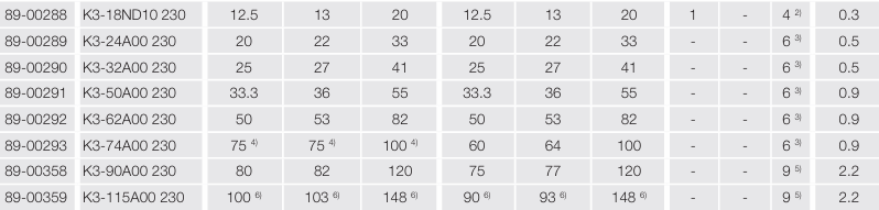 | Cỡ cầu chì tối đa (Max. fuse size): | K3-18, 24, 32: 100 A |