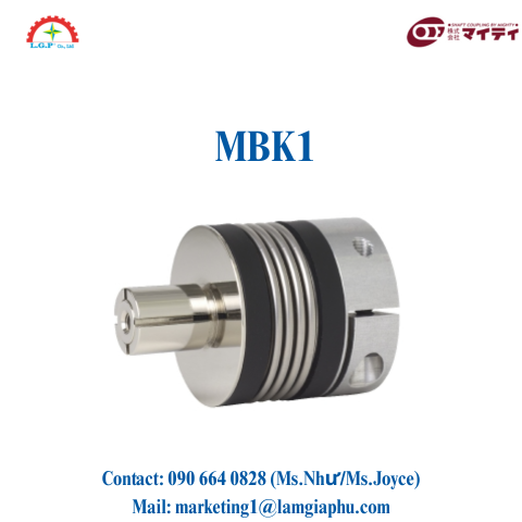 Khớp nối Mighty MBK1 là một loại khớp nối linh hoạt được thiết kế với vít cài đặt ngang (Radial Set Screws) và cấu trúc bellows (cuộn sóng). Sản phẩm này có khả năng bù sai lệch giữa các trục, giúp truyền động ổn định và giảm tác động của lực sốc và rung động trong hệ thống.