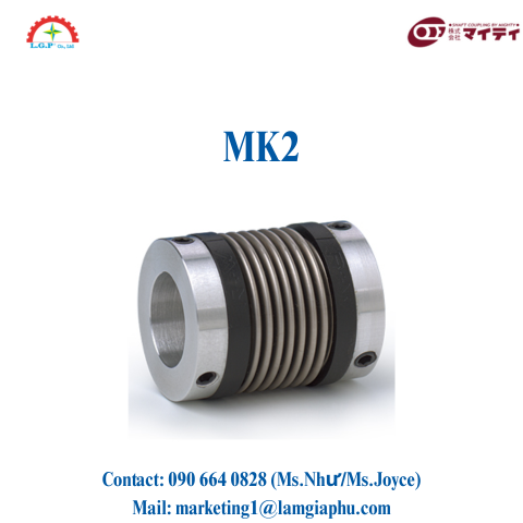 Khớp nối Mighty MK2 là một loại khớp nối linh hoạt, được thiết kế để kết nối các trục quay trong các hệ thống truyền động. Khớp nối này sử dụng cấu trúc bellows (cuộn sóng) để bù đắp sai lệch về góc và trục, đồng thời giúp giảm rung động và lực sốc trong hệ thống. Với tính năng dễ dàng lắp đặt và khả năng chịu tải cao