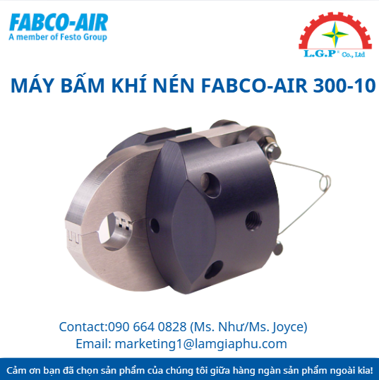 LGP Co., Ltd– Chúng tôi cung cấp Máy bấm khí nén FABCO-AIR 300-10, nổi tiếng về chất lượng và hiệu suất vượt trội trên thị trường. Sản phẩm của chúng tôi được khách hàng đánh giá cao về độ tin cậy và chất lượng tiêu chuẩn. Các sản phẩm được kiểm tra cẩn thận, mua từ các nguồn uy tín và có nhu cầu cao. Chúng tôi cung cấp trên toàn quốc với giá cả cạnh tranh. Ngoài ra, chúng tôi còn cung cấp các sản phẩm của các thương hiệu như Silvent, Vikan, Air Torque, Jumo, Yudian,…